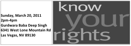 As a part of SALDEF’s ongoing effort to empower the community and strengthen partnerships with government, we are pleased to report a successful Know Your Rights (KYR) Forum hosted for the Sikh American community of Las Vegas and Clark County, NV in cooperation with the Gurdwara Baba Deep Singh on Sunday, March 20th.